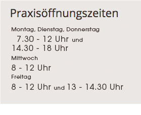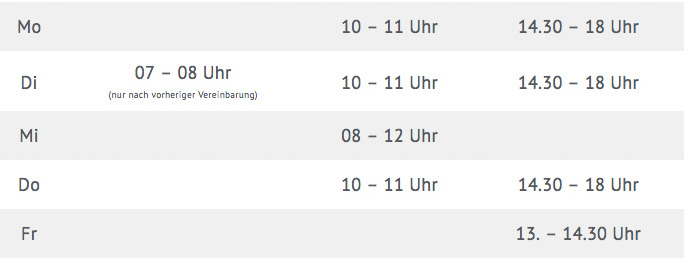Um die Wartezeiten so kurz wie möglich zu halten, bitten wir um vorherige Terminvereinbarung. Keinen Termin benötigen Sie, wenn sie nur ein (vorbestelltes) Rezept abholen oder eine vorher besprochene Impfung durchführen lassen möchten.